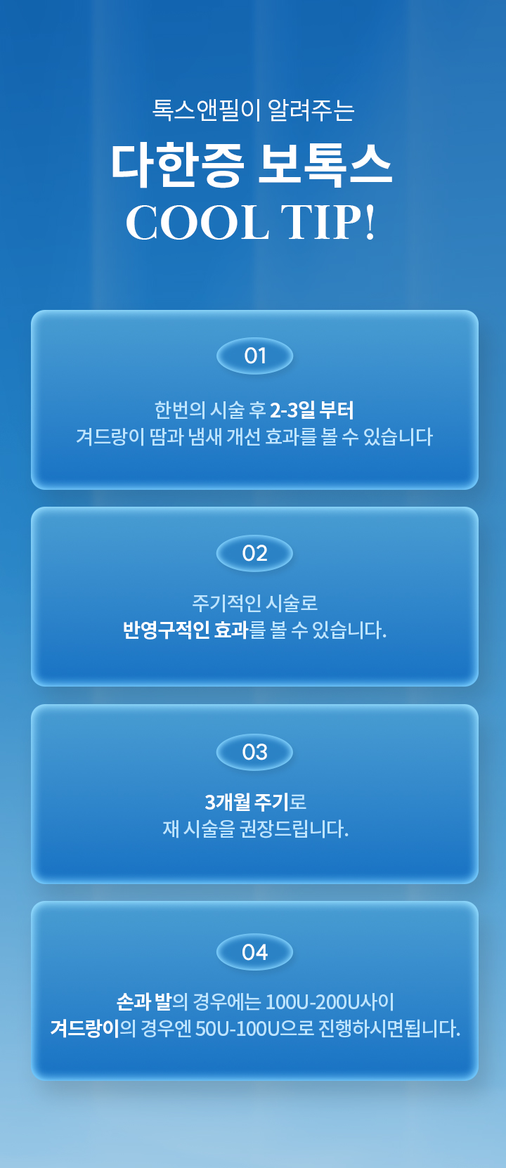 2 평균 2~3개월간 유지되므로 지속적인 효과를 원한다면 3개월 이내 재시술을 권장드립니다.